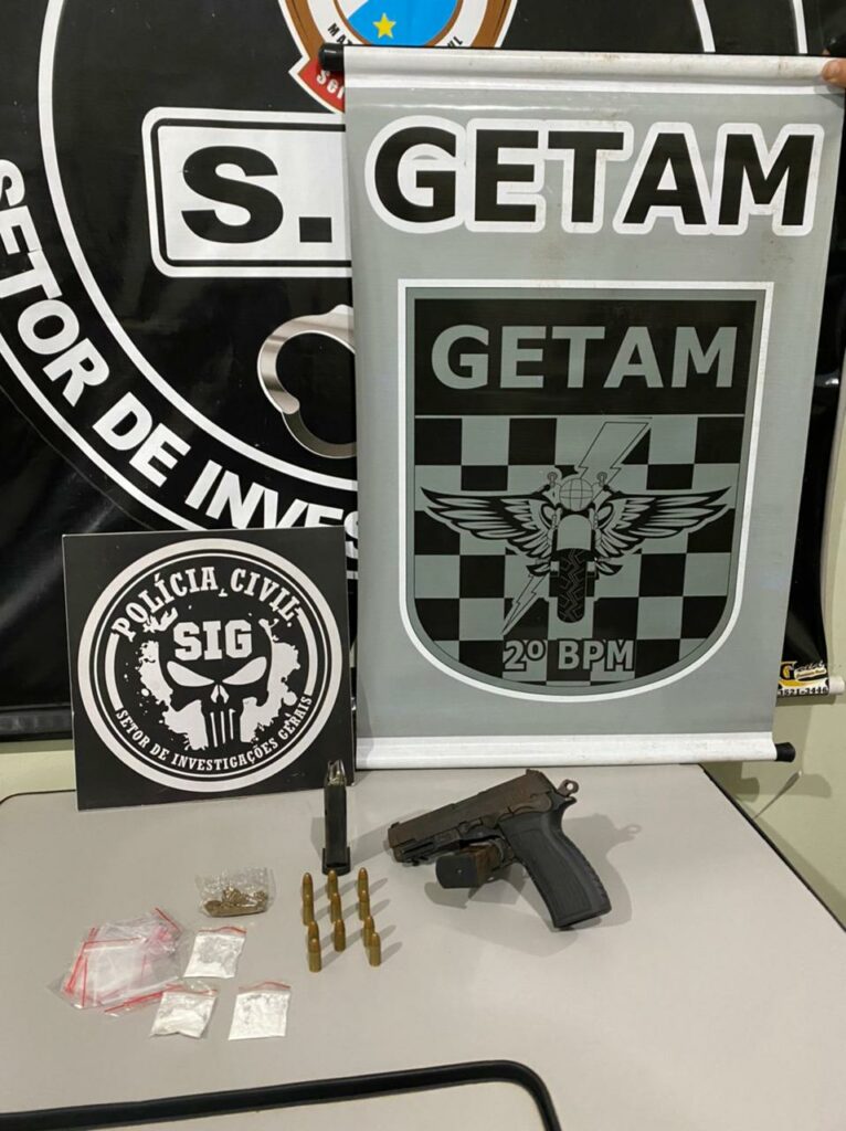 Um veículo modelo VW Up, que é utilizado para a prática do tráfico por um dos presos na operação, além de oito aparelhos celulares e R$ 2 mil em dinheiro, sendo os detidos autuados em flagrante pela pratica de vários crimes, como tráfico, posse irregular de arma de fogo de uso permitido e receptação.