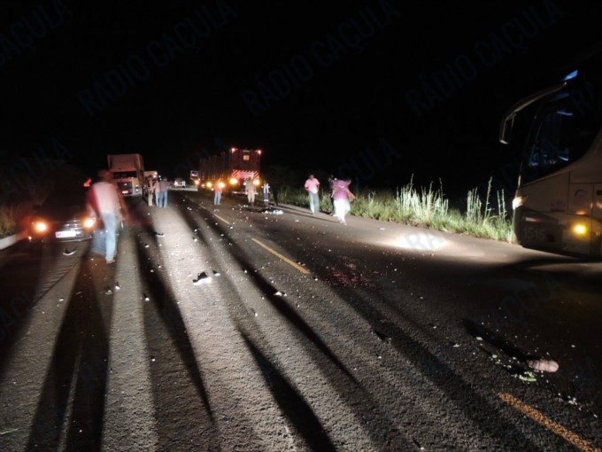 Com a colisão, Laércio da Silva que estava como passageiro na moto teve seu corpo arremessado ao sentido contrário da pista sendo atropelado por uma carreta P310/Scania de cor prata, que era conduzido por Delírio Ribeiro de Souza (42) que seguia sentido Três Lagoas/Ponte do Sucuriú. Por pouco um bi trem, carregado com eucalipto que seguia logo atrás da carreta também não passou por sobre o Laércio.