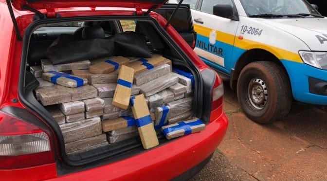 A droga foi encontrada em um veículo com placas de São Bernardo do Campo (SP).