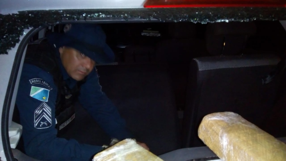 No interior do veículo e escondido na vegetação próxima estavam 161 tabletes de maconha, que pesaram 168,65 kg. O condutor do veículo não foi localizado e, segundo informações, um veículo Celta, de cor branca, dava apoio ao carro abandonado.