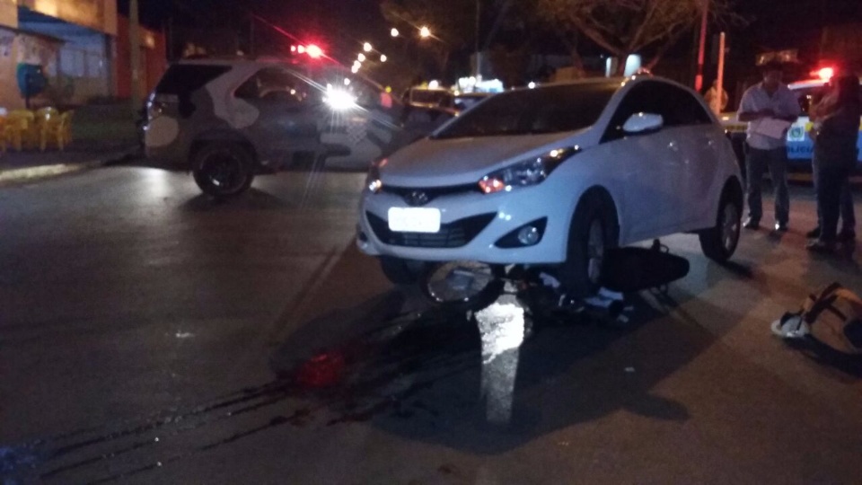 Em colisão, moto vai parar embaixo de carro no centro de Três Lagoas