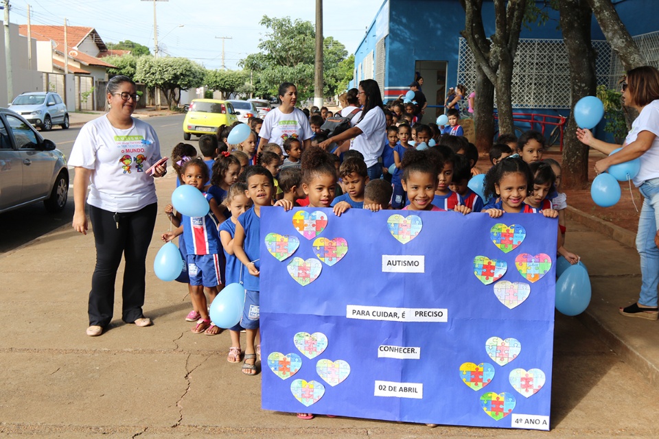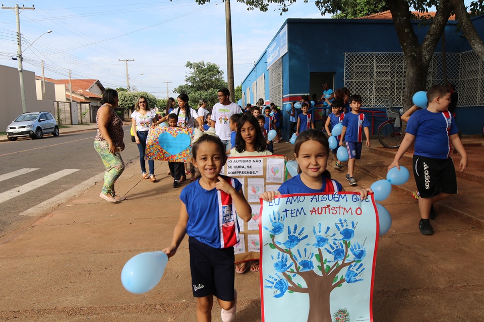 Dando continuidade a programação da Primeira Semana de Conscientização do Autismo foi realizada nesta quinta-feira (04), na Escola Municipal Irmã Scheilla, a primeira caminhada de mobilização sobre o tema.
