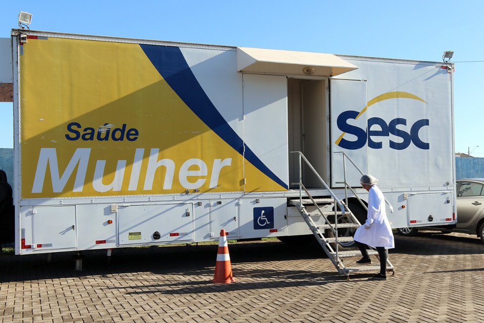 TRÊS LAGOAS (MS) – A unidade móvel de Saúde da Mulher do Serviço Social do Comércio de Mato Grosso do Sul – SESC/MS, carreta instalada no pátio de estacionamento da Unidade Básica de Saúde – UBS Nova Três Lagoas, desde o dia 27 de maio, vem atendendo a uma média diária acima de 30 mulheres para exames de Papanicolau (preventivo e diagnóstico de câncer de colo de útero) e 16 procedimentos diários de exames de Mamografia (prevenção e diagnóstico de câncer de mama).