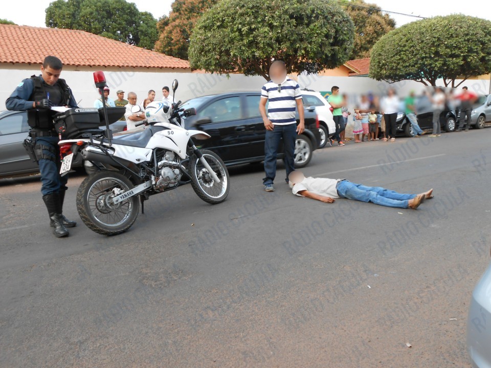 Sem ter o que fazer o rapaz atropelou o homem, que foi arremessado na via e sofreu diversas escoriações pelo corpo.