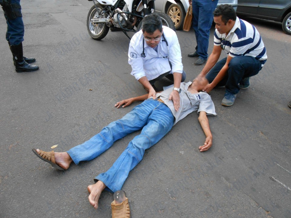 Apenas 15 minutos depois um idoso que sofre de problemas mentais foi atropelado na Rua Paranaíba, em frente ao Hospital.