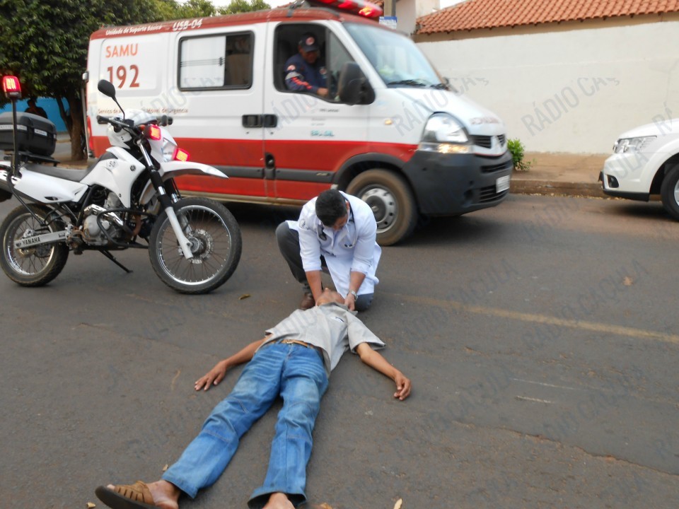 Conforme informações do condutor identificado como M.B.G. de 20 anos, ele seguia com sua motocicleta Honda Biz de cor vermelha, pela Rua Paranaíba, sentido rodovia, quando o idoso de repente, surgiu na frente dele.