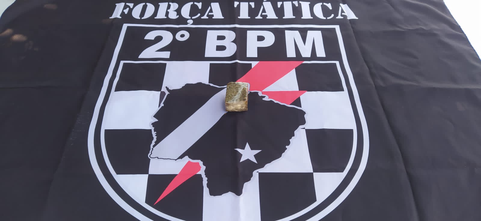 Acionados para a verificação da denúncia, um suspeito foi abordado, que estava machucado após ser linchado por populares e em revista pessoal foi encontrado um tablete de maconha pesando 45gr no seu bolso.