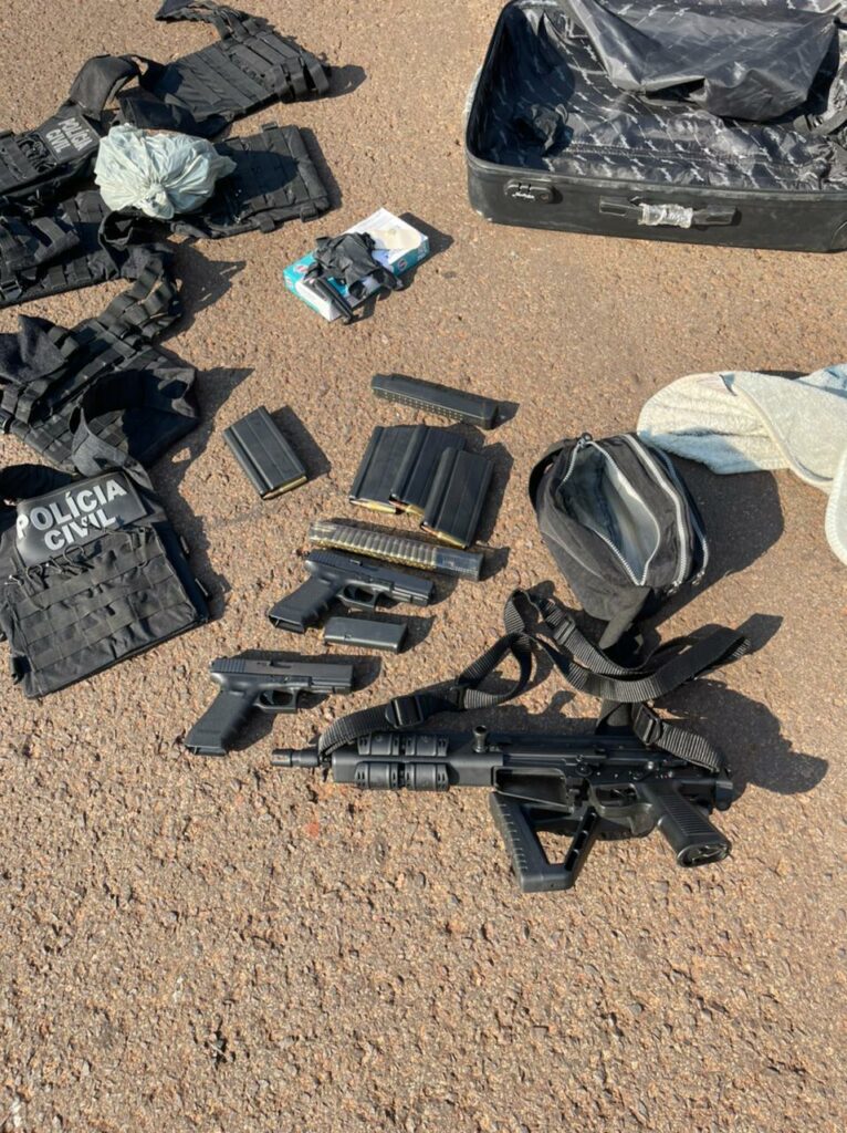 A partir de informações anônimas, que foram recebidas pelos policiais federais, foram feitas diversas investigações, além de diligências que resultaram na prisão de um suspeito que portava uma autorização CAC (colecionador, atirador e caçador), além da apreensão de três pistolas 9mm, quatro fuzis, munições, coletes balísticos, identificações falsas da Polícia Civil, e outros materiais.