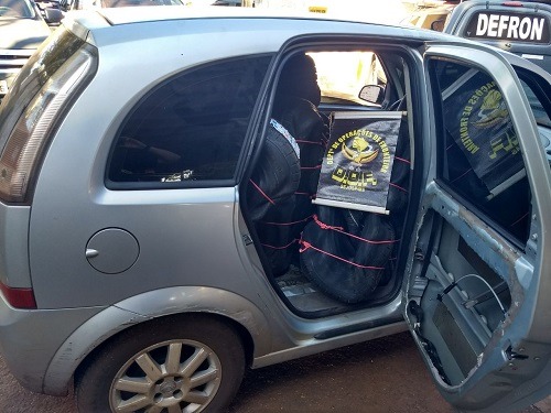 Durante abordagem realizada ontem (29) por policiais do Departamento de Operações de Fronteira (DOF), na rodovia MS-164, um motorista conduzindo um veículo GM Meriva, com placa de São José dos Pinhais (PR), foi flagrado transportando 51 pneus novos, de várias marcas, tamanhos e modelos.