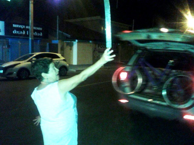 A idosa, que é vizinha da casa invadida pelo rapaz, ouviu a conversa. Rapidamente, ela se apossou do facão e foi ao encontro do bandido. Decidida a abordar o acusado, a mulher o perseguiu pela rua, mas não conseguiu detê-lo.