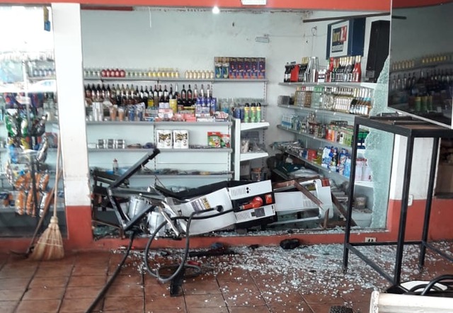 No local, a equipe encontrou o condutor do veículo, sendo carregado por seu pai, em visível estado de embriaguez. O homem apresentava dificuldade para caminhar e exalava forte odor etílico. O veículo encontrava-se parado me meio do pátio do Posto de combustível, com uma das bombas de combustível arrastada até a parede de vidro da conveniência, tendo quebrado e transfixado uma parede, parando no interior da loja, completamente destruída.