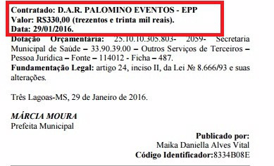A empresa de Palomino já foi alvo de investigações em novembro de 2014 durante a “Operação Morteiro” que investigou um prejuízo de mais de R$ 1 milhão a Prefeitura Municipal de Três Lagoas.