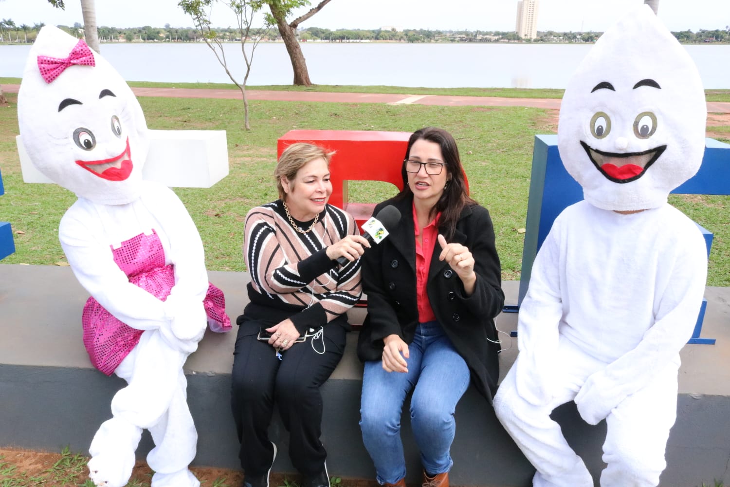 A apresentadora esteve ao lado dos símbolos da campanha, e chamou os pais a levarem seus filhos para tomar as gotinhas contra a Pólio.
