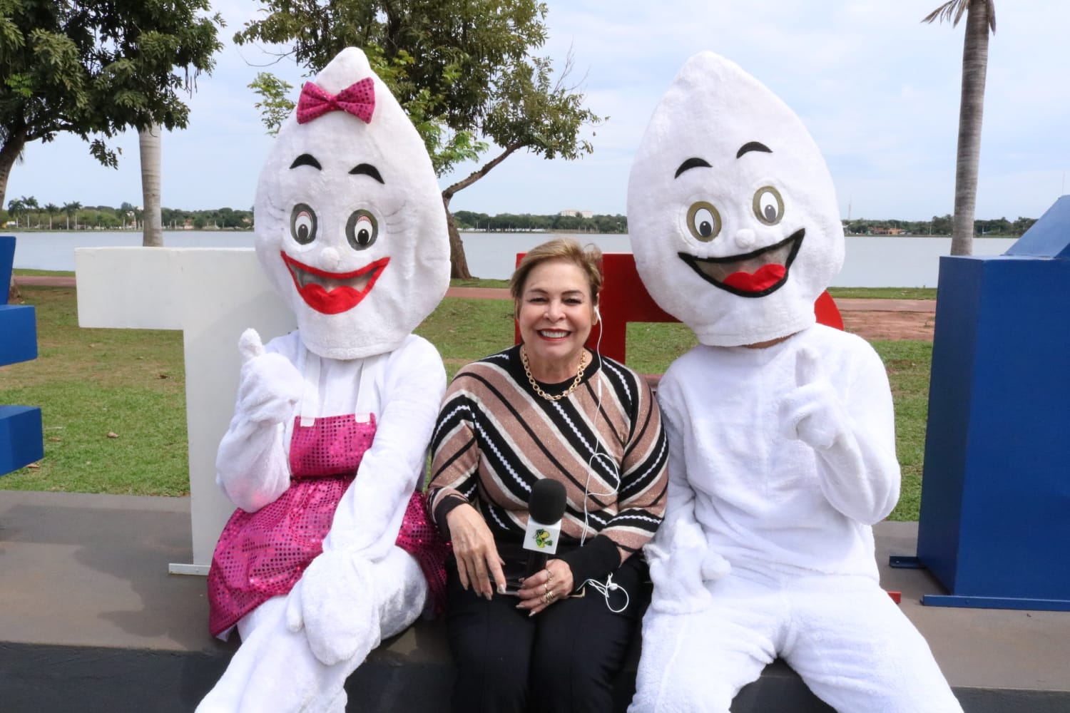 A apresentadora esteve ao lado dos símbolos da campanha, e chamou os pais a levarem seus filhos para tomar as gotinhas contra a Pólio.