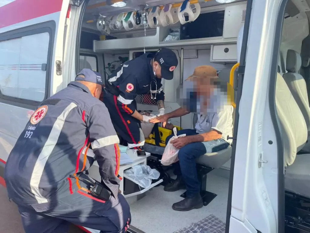 Acidente ocorreu em trecho em obras com sistema “pare e siga”; casal precisou de atendimento do SAMU.