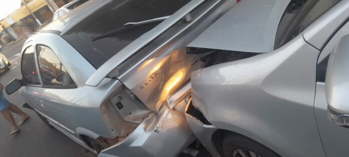 No final da tarde deste domingo, 07, um engavetamento envolvendo três veículos chamou a atenção de quem passava pelo Centro de Três Lagoas.