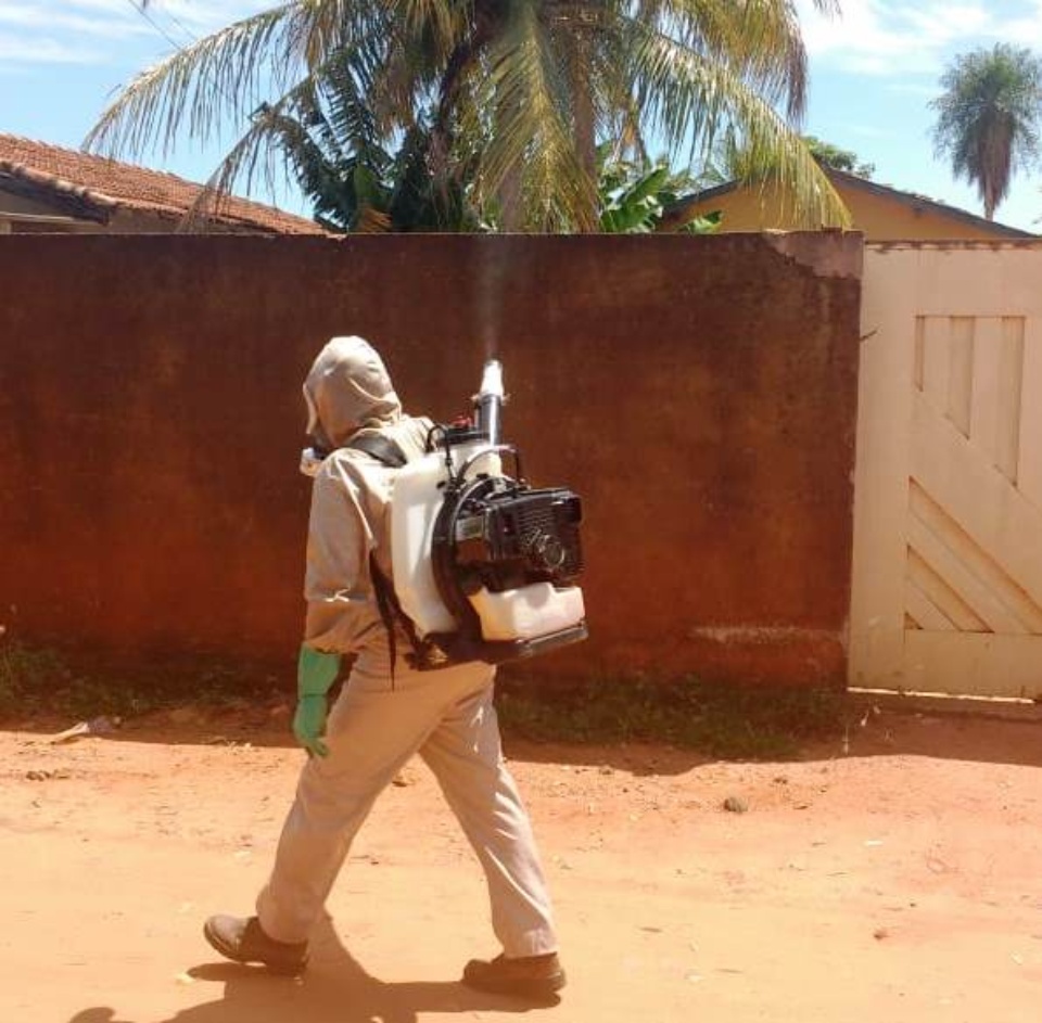 No Jardim Maristela e em alguns locais da Vila Piloto, as equipes realizaram também bloqueio químico, usando bombas costais motorizadas de pulverização de inseticida.