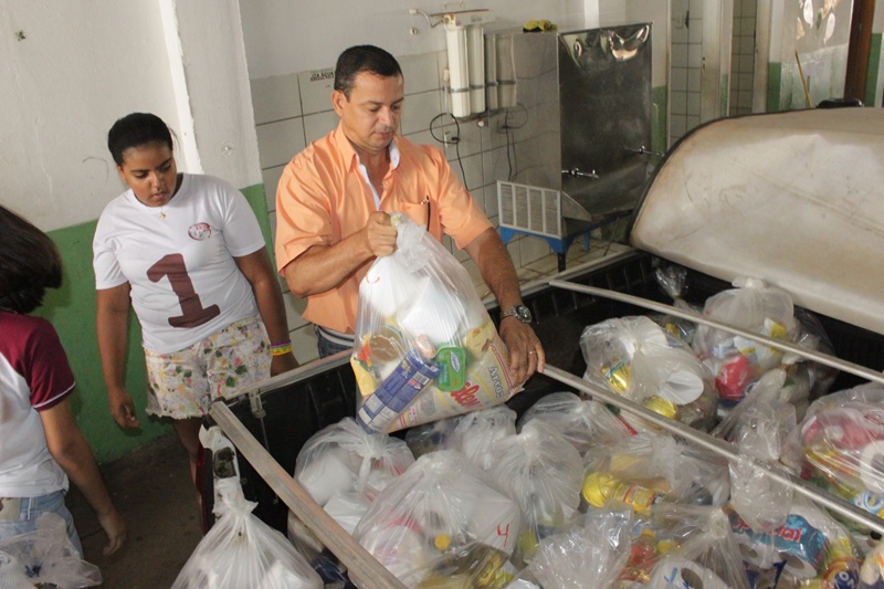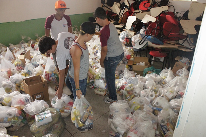 A arrecadação de alimentos foi feita pelos alunos da escola, durante uma Gincana Solidária realizada neste semestre.