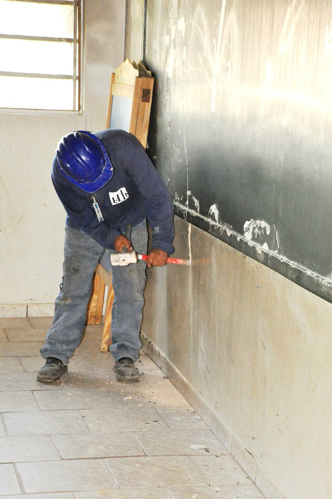 A sala receberá novos ventiladores de teto e parede, lâmpadas, pintura nas paredes e teto, nova mesa para o professor e a recolocação de pisos que racharam devido ao calor.