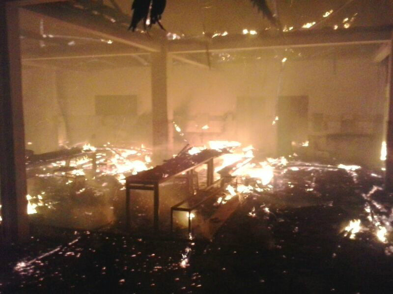 Conforme mostram as imagens e o vídeo desta matéria, a unidade está sendo totalmente destruída pelo fogo que está sendo contido pelos militares. As informações iniciais são que na escola não estava nenhum funcionário, ficando descartada a possibilidade de vítimas no local.