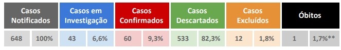 O número de suspeitas da Covid-19 subiu de 28 para 43 entre ontem e hoje. Outros 18 foram descartados depois do resultado das amostras retornar negativo.
