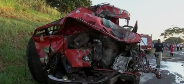 De acordo com a Polícia Rodoviária, a batida envolveu um caminhão que transportava caixas de leite e outro que prestava serviços para a Companhia Paulista de Força e Luz (CPFL) e fazia manutenção da rede elétrica próximo ao viaduto da Avenida Potirendaba.