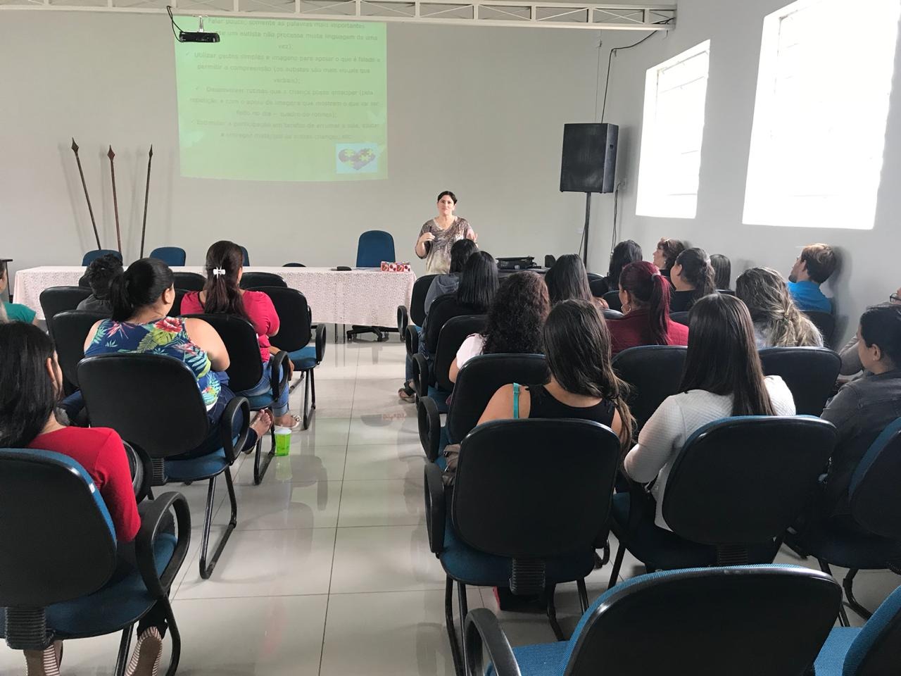 A capacitação foi realizada pelas psicólogas do Núcleo de Educação Especial da Secretaria de Educação (NUESP), Ludimila Testi Agutoli e Desirré Taveiros e teve como objetivo preparar os estagiários para trabalhar com crianças autistas.