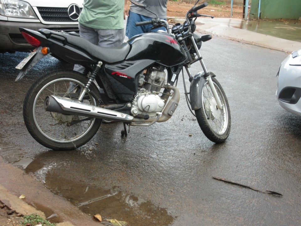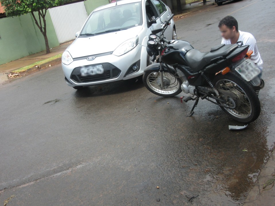 Por volta das 13h40 desta quarta feira (10), mais um acidente foi registrado na Rua Paranaíba após a Avenida Ranulpho Marques Leal, bairro Jardim Angélica, envolvendo uma motocicleta Honda CG 125 de cor preta e um veículo Fiesta de cor prata.