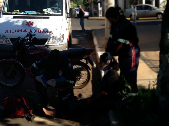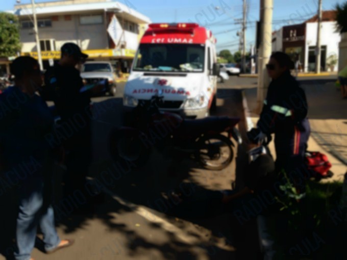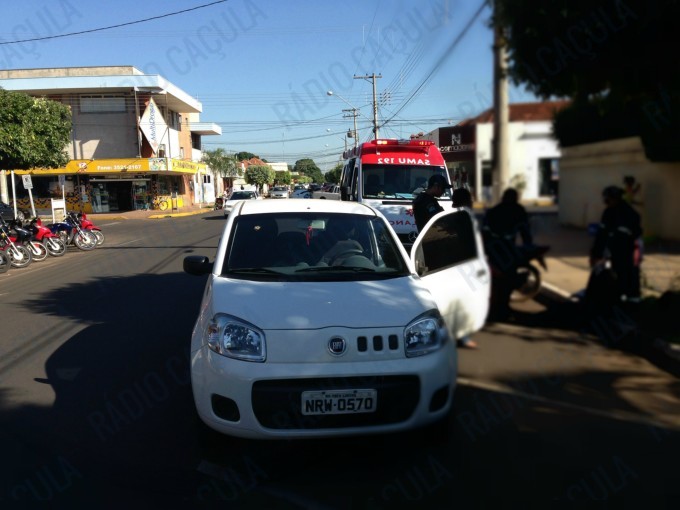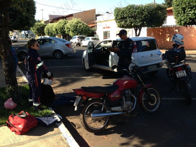 Na manhã desse sábado, por volta das 08:30 hs, um automóvel e uma motocicleta colidiram na Rua Munir Thomé esquina com a rua João Carrato, no centro de Três Lagoas.