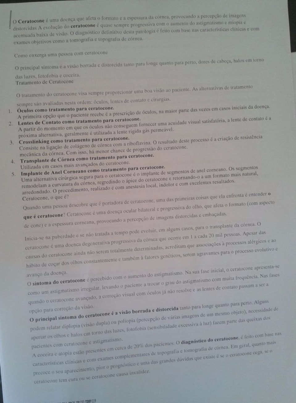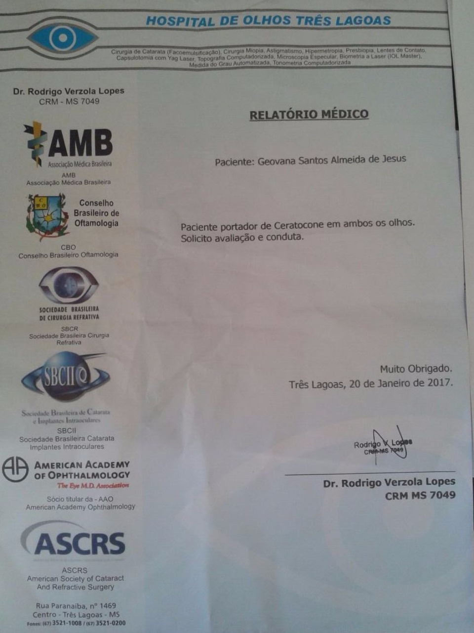 A mãe contou que precisa fazer exames de “paquimetria e topografia das córneas” – inclusive há laudos médico para isso – mas, enfrenta a demora devido às filas, além do medo de que não haja tempo para evitar a progressão da doença.