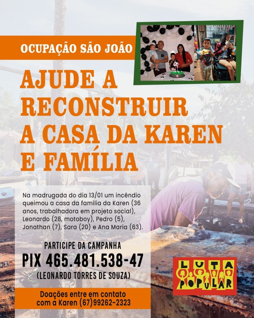 Uma campanha popular de arrecadação foi iniciada para ajudar com materiais de construção, móveis, eletrodomésticos e mantimentos. Também está sendo realizada uma vaquinha via PIX, cuja chave é 465.481.538-47 (Leonardo Torres de Souza), além de contato pelo número (67) 9.9262-2323 (Karen).