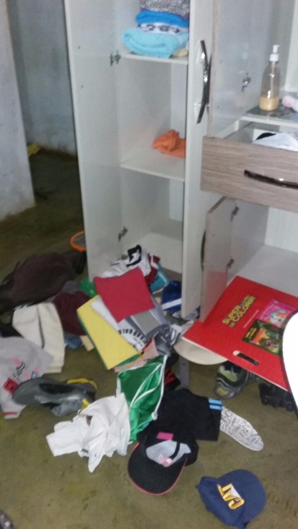 Foram revirados todos os cômodos, sendo arrombada a porta da cozinha e do quarto do casal, além de roupas, ferramentas de trabalho, foram levados todas as misturas e alimentações que a família tinha na geladeira.