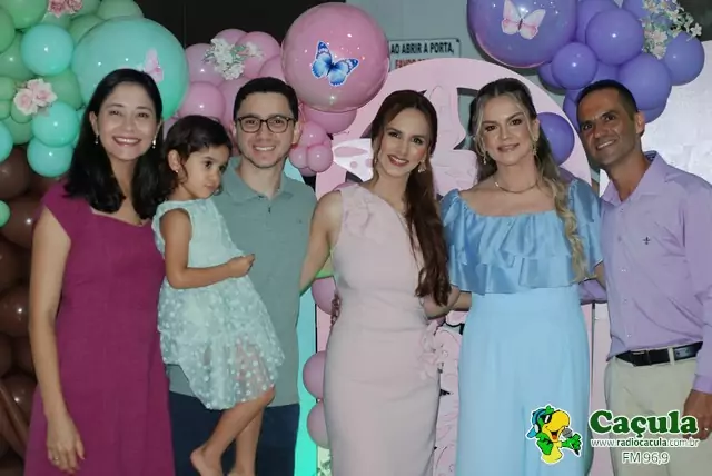 As irmãs Dra. Monike Vital e Maika Daniella, ao lado do esposo Alex Miranda, celebraram com muita alegria o 2º aniversário da pequena Ana Liz. A festa aconteceu no espaço Viera Festa e reuniu amigos e familiares para comemorar essa data tão especial. Com o tema encantador “Festa Jardim das Borbeletas”, o ambiente estava mágico, repleto de cores suaves e detalhes delicados. Ana Liz estava radiante, com um sorriso iluminado no rosto que contagiava a todos. Parabéns, Ana Liz! Que sua vida seja sempre repleta de amor, saúde e muitas felicidades!