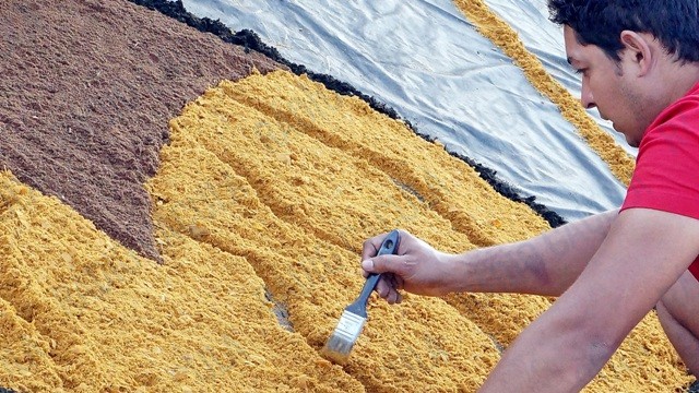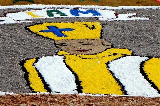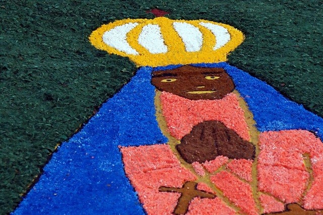Os tapetes formam as mais diversas e belas imagens, representando a fé dos participantes que após a montagem participam de uma procissão.