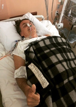 Em foto divulgada nas redes sociais na madrugada desta sexta-feira (7) pelo filho Flavio Bolsonaro, o presidenciável Jair Bolsonaro (PSL) aparece fazendo sinal de positivo e esboçando um sorrindo em seu leito na UTI da Santa Casa.