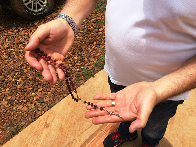 A todo momento da reportagem, o pai do jovem se agarrou em uma das coisas que ficou intacta dentro da camionete que lhe foi entregue em Três Lagoas neste domingo. Um terço que estava pendurado no retrovisor foi guardado como lembrança do acidente fatal.