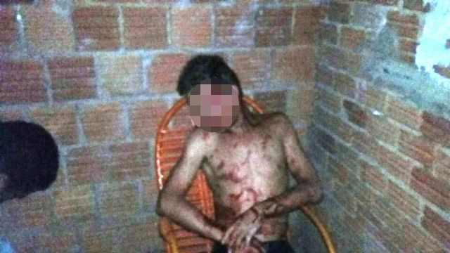 Poucos minutos depois, J.L.P.R.S. começou a gritar por socorro e a vítima e seu filho correram em direção a residência, onde encontraram o agressor coberto por sangue.