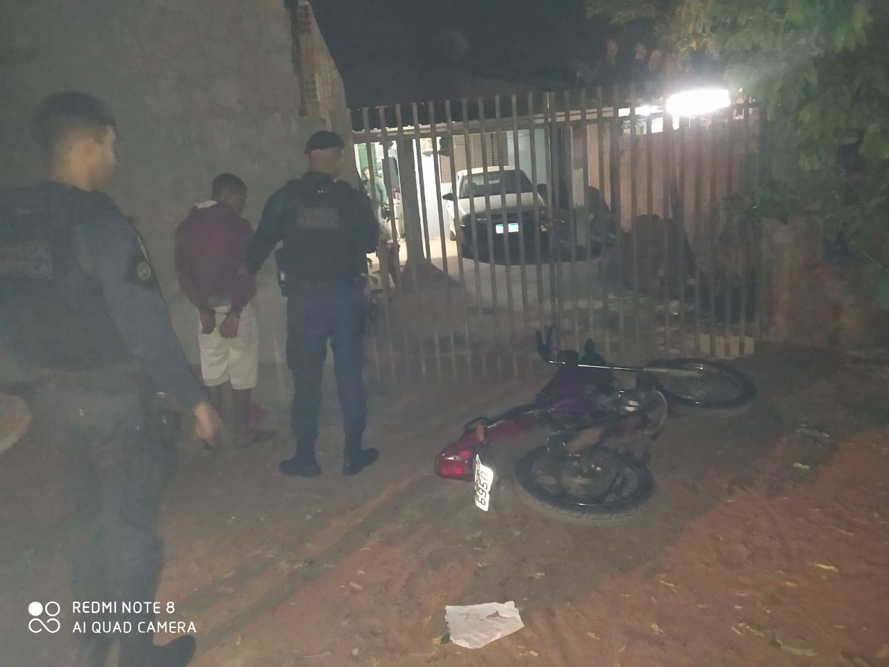 Em revista pessoal, nada foi encontrado, porém na checagem do nome do suspeito nos sistemas criminais, constou um mandado de busca e apreensão em seu desfavor. Já em vistoria na motocicleta, os policiais constataram ser o veículo que foi furtado horas atrás.