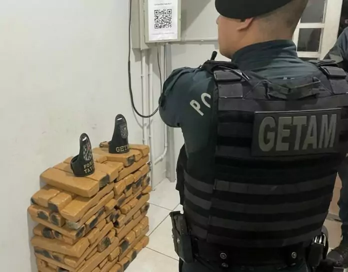 Uma operação conjunta da Força Tática da Polícia Militar e do GETAM (Grupamento Tático de Motos) resultou em uma grande apreensão de drogas na noite desta sexta-feira (10), no bairro Vila Nova, em Três Lagoas (MS). Ao todo, 96,8 kg de maconha foram encontrados no porta-malas de um carro estacionado em uma residência.