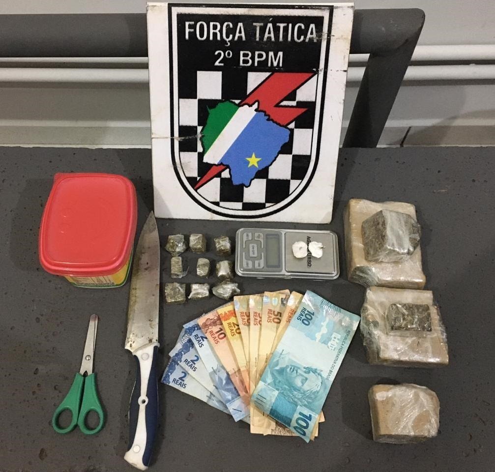 Diante a confirmação da suspeita de que na residência seria um ponto de venda de drogas, a polícia foi ao local e após ser feita a abordagem do morador, foi localizado na casa 23 gramas de maconha que estavam em cima de uma cama, dentro da geladeira cerca de 36 gramas da mesma droga, já embaladas para a venda, uma faca com resquícios de droga e R$ 336,00 em dinheiro.