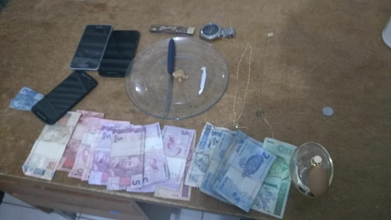 De acordo com informações da Polícia Militar, o suspeito mora na casa da tia, que autorizou a entrada dos oficiais e durante a averiguação do imóvel, chegou uma usuária de drogas e pediu uma porção de crack.
