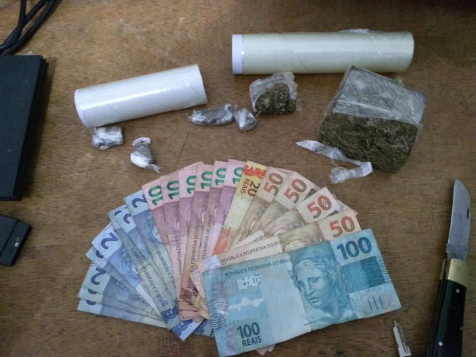 O segundo televisor estava na casa de “Pardal”, um jovem de 22 anos acusado de traficar drogas no bairro Vila Nova. Os policiais se dirigiram para a Rua Bom Jesus da Lapa onde o jovem foi abordado em frente de sua casa e durante revista pessoal os agentes localizaram cinco porções de maconha prontas para a venda.