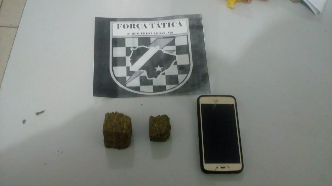 Durante a ronda, os policiais avistaram um jovem que, ao avistar a viatura, correu para dentro de uma casa. Os policiais então o abordaram e ele disse que fugiu, pois estava com um tablete de maconha de 40 gramas. O conteúdo foi jogado no quintal do vizinho durante a tentativa de fuga.