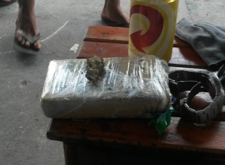 Os policiais realizaram diligências e localizaram o homem, que já é conhecido por ter passagens por tráfico de drogas e furto. Em busca pessoal, foram localizados dentro da bolsa um tablete de maconha, pesando aproximadamente 350 gramas. O suspeito não quis informar a origem da droga.