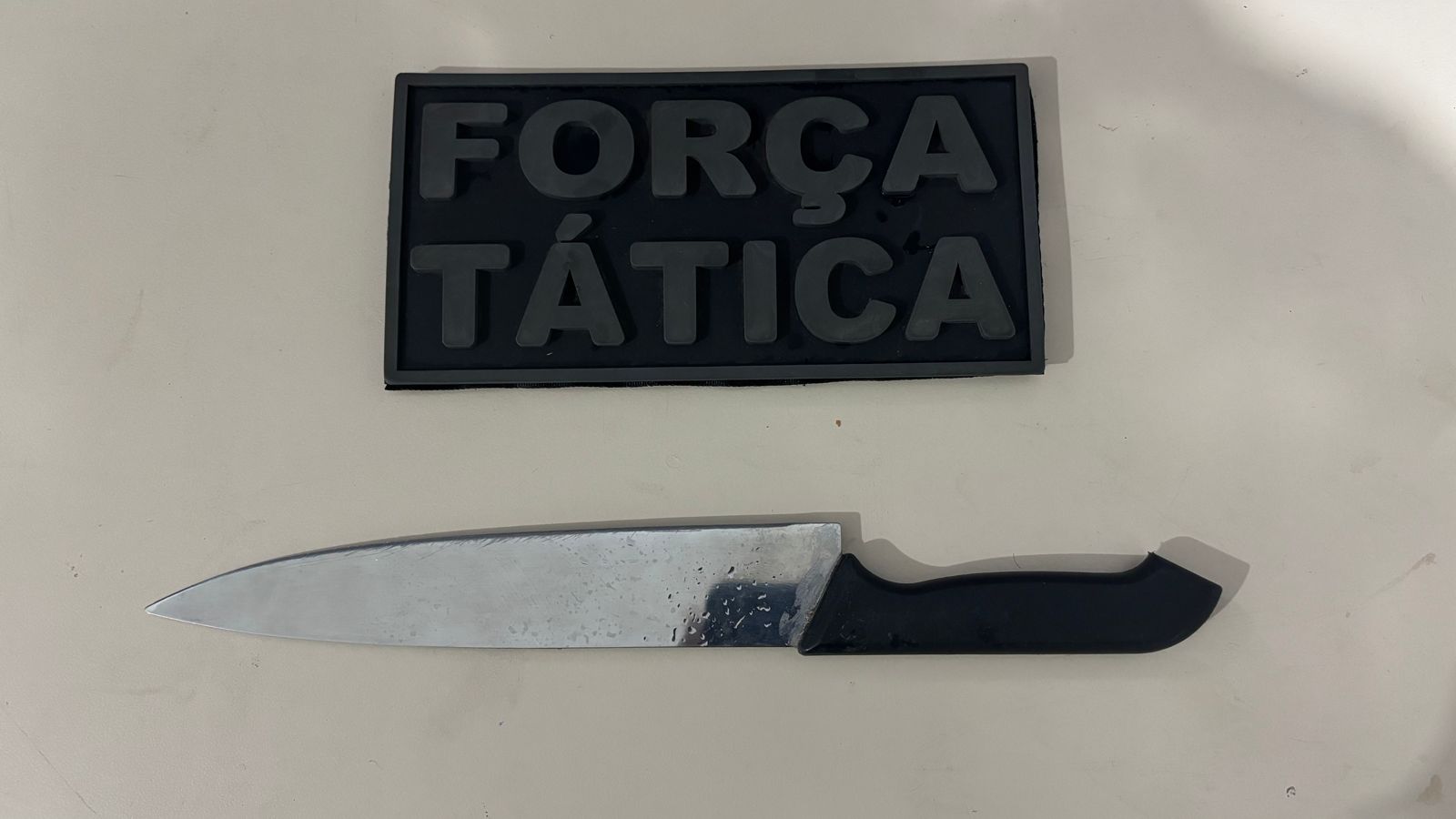 De acordo com a Polícia Militar, a equipe foi acionada por volta das 19h30 para atender uma denúncia de ameaça na rua Michel Thomé. No local, os policiais constataram que o autor estava armado com uma faca e fazia ameaças diretas contra o pai, gerando risco iminente à integridade da vítima.
