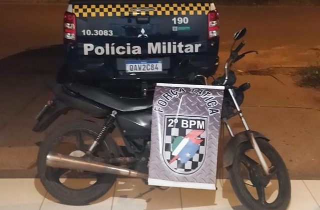 TRÊS LAGOAS (MS) – Uma equipe da Força Tática da Polícia Militar recuperou na noite desta quarta-feira (10) uma motocicleta que havia sido furtada. O veículo foi encontrado estacionado em baixo de uma árvore, no bairro Vila Verde.