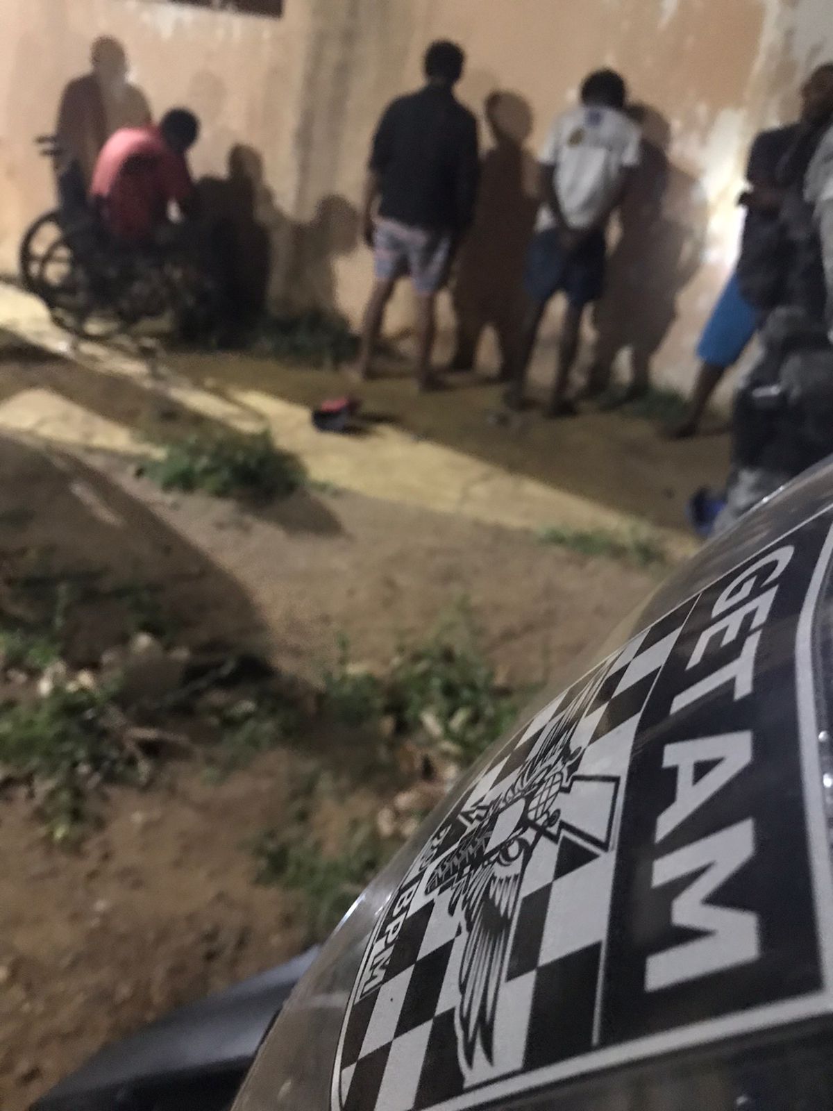 Em policiamento ostensivo pelo bairro Santos Dumont, o Grupamento Especial Tático de Motos (GETAM), na Av. Clodoaldo Garcia, visualizou uma concentração de usuários de drogas em uma construção abandonada, fronte ao CRASE Coração de Mãe.