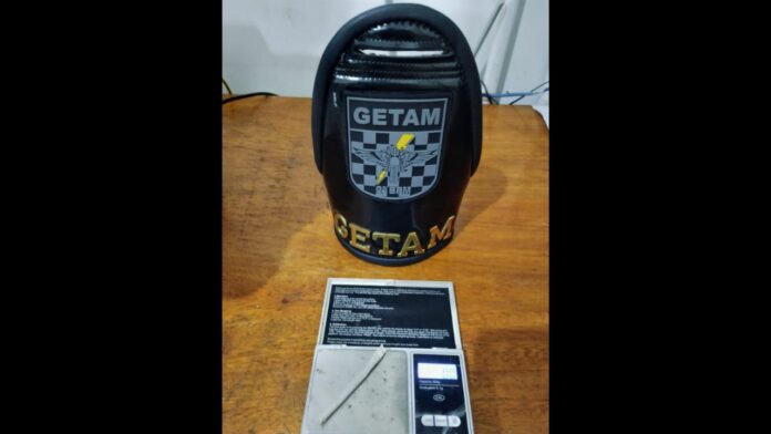 Por volta das 18h40, os policiais do Grupamento Especial Tático de Motos (GETAM) em rondas pela Rua Rui José da Costa, avistou o homem em frente à uma residência, onde ficou nervoso com a presença policial, além de aparentar estar com algo nas mãos, o que levantou a suspeita.
