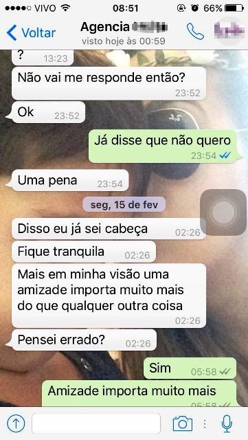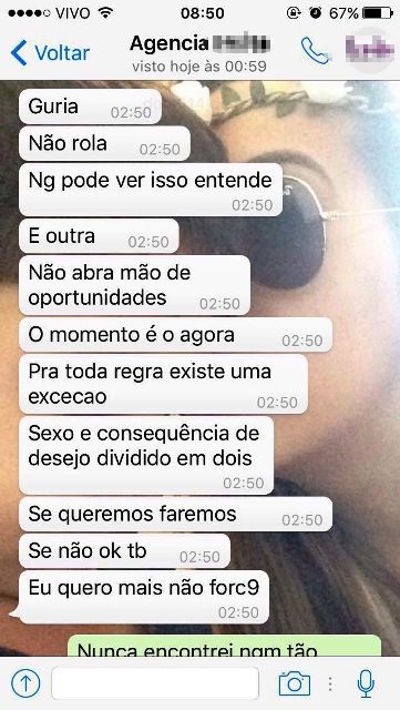 Por isso, recebeu com surpresa a notícia de que um dos prestadores de serviços teria trocado mensagens com caráter inadequado com modelos femininas, mesmo que fora do ambiente e do horário de trabalho.