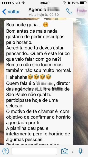 A suspeita é que o homem – que se passou como gerente de duas agências de modelos – teria cometido os ilícitos ao enviar mensagens via whatsWapp a algumas meninas que participavam do encontro em Três Lagoas.